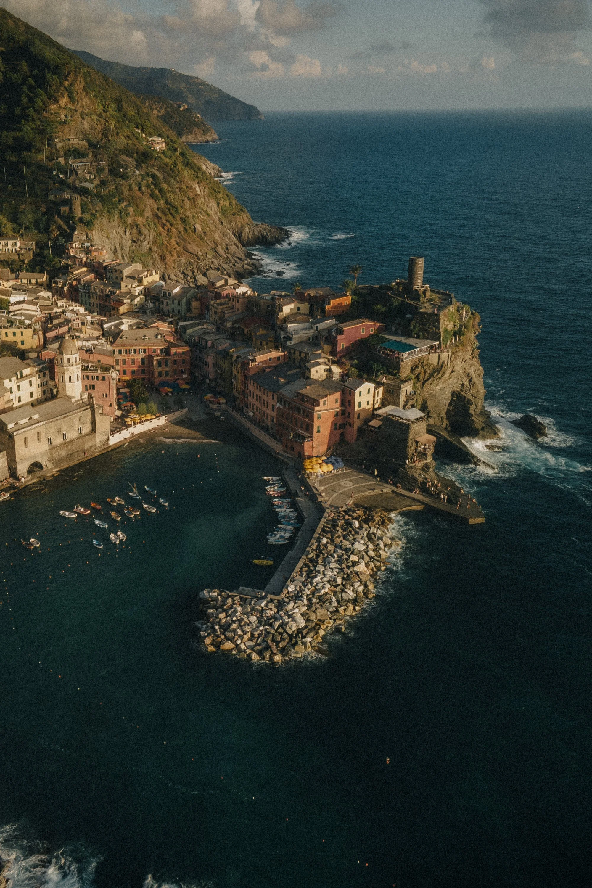 What was missing was warmth, atmosphere, and a sense of late-summer stillness — the way Vernazza actually feels when the sun hangs low and the sea turns dark turquoise.