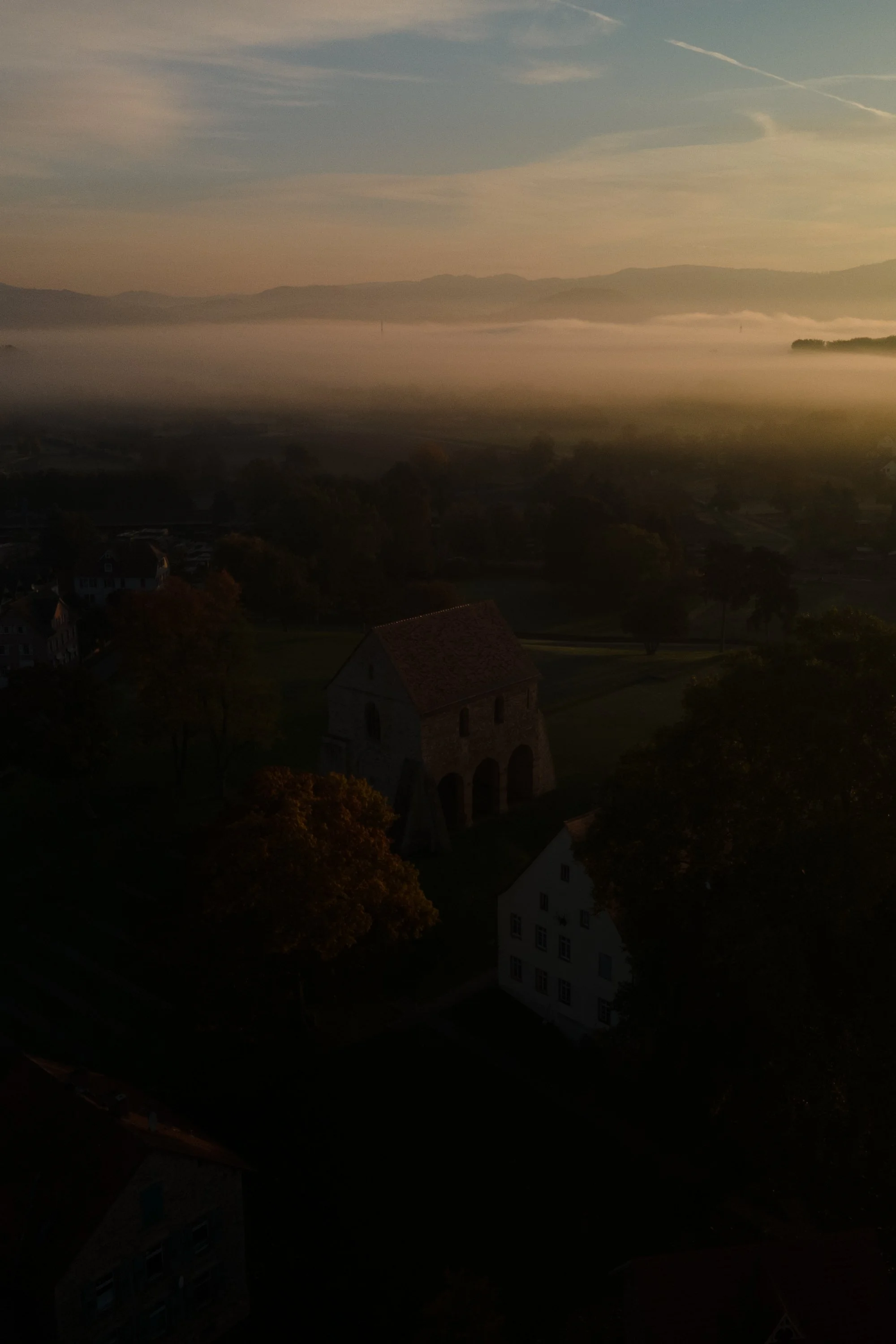 This image was captured just after sunrise at the UNESCO World Heritage site of Lorsch Abbey. The mist still hung over the fields, and the early sun had begun to illuminate the first autumn trees. The RAW photo, however, looked much darker than the scene felt in reality — underexposed and heavy, with most of the mood hidden in the shadows.