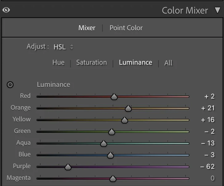 Small luminance adjustments helped shape the scene. By adjusting how bright certain colors appear, the waves gained more texture and structure.